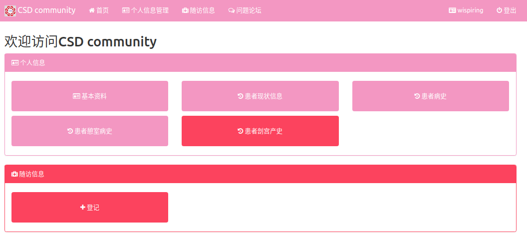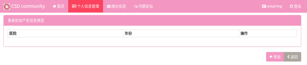 或者点击 “个人信息管理” 导航下的 “患者剖宫产史” 进入填写页面。