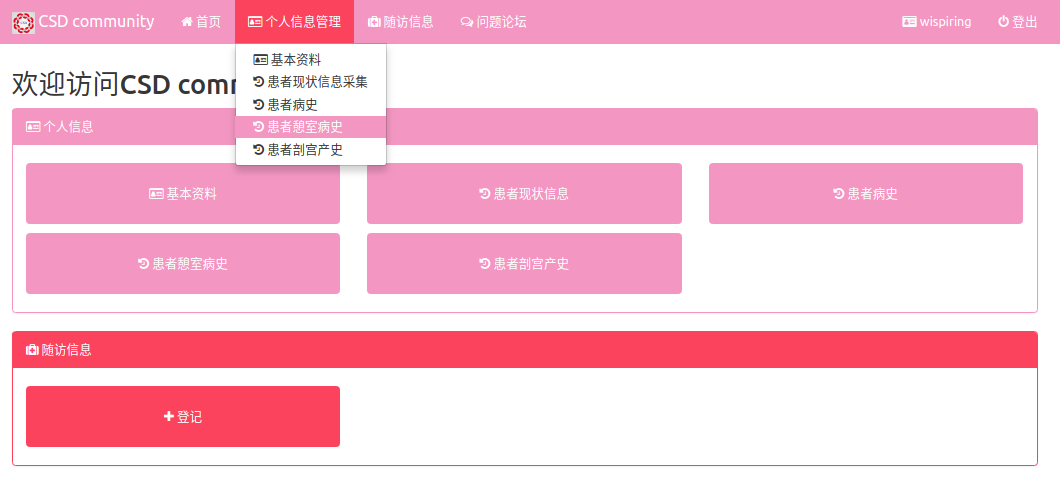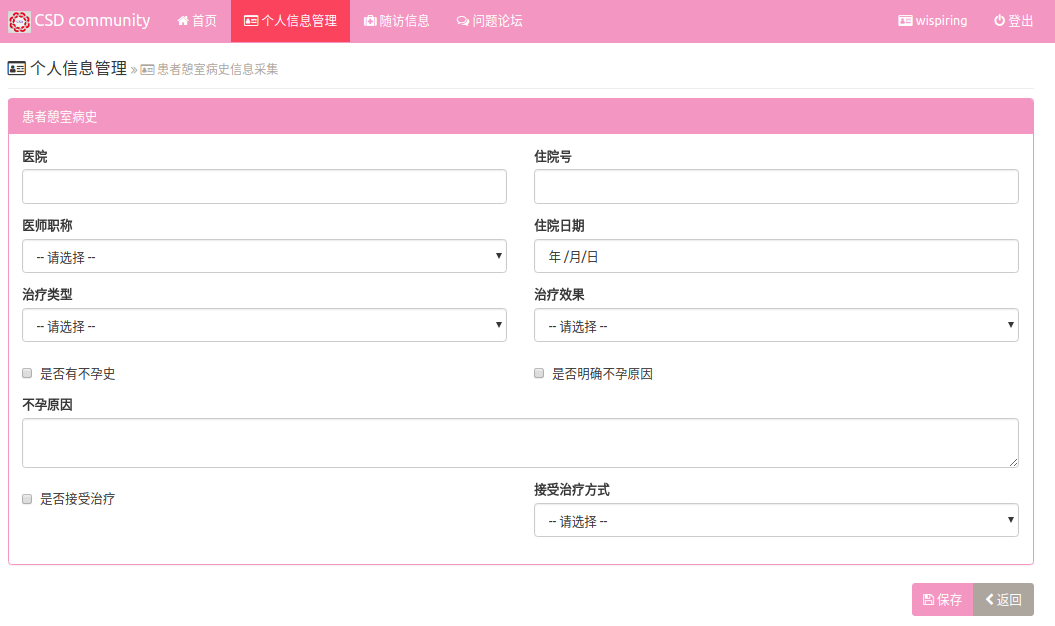 或者点击 “个人信息管理” 导航下的 “患者憩室病史” 进入填写页面。