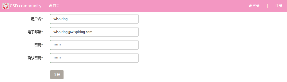 填写用户信息,点击 “注册” ,进入系统。